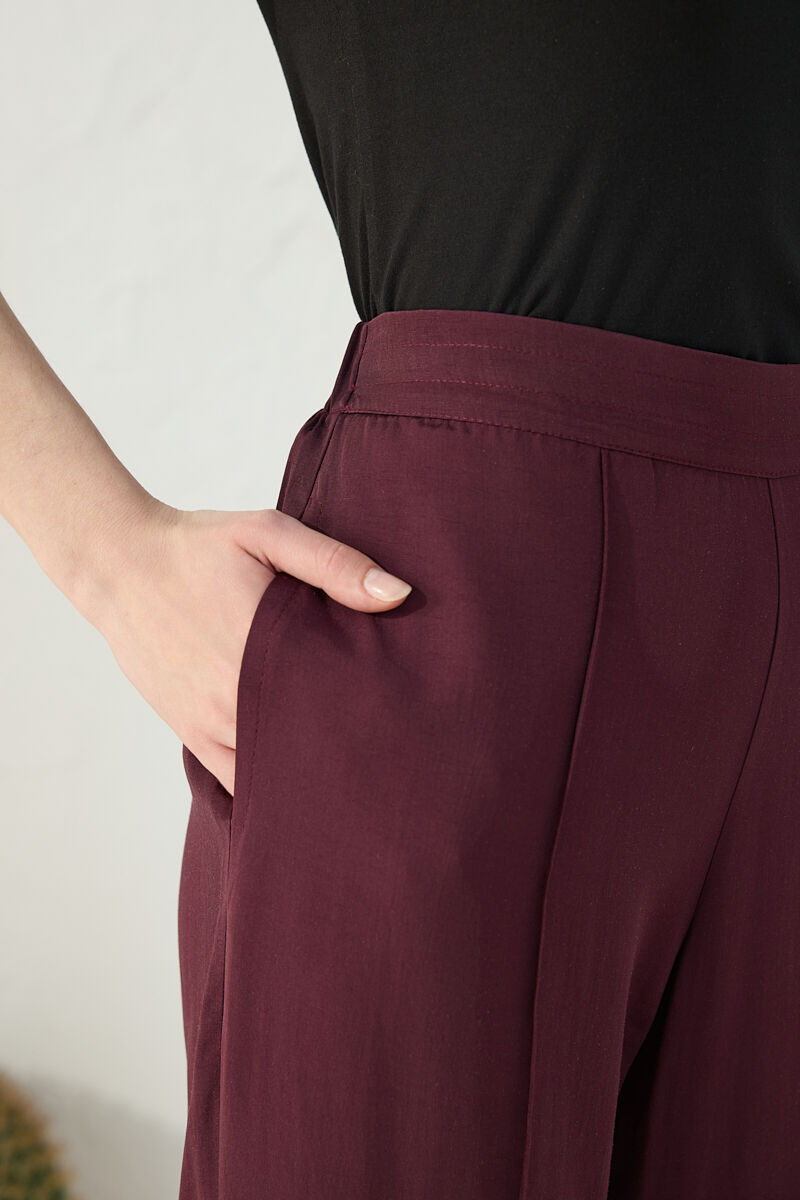 Fuşya Beli ve Paçası Lastikli Balon Form Keten Pantolon
