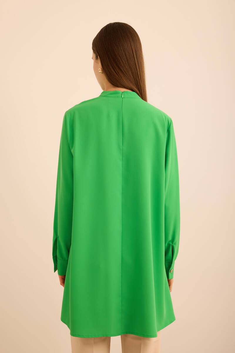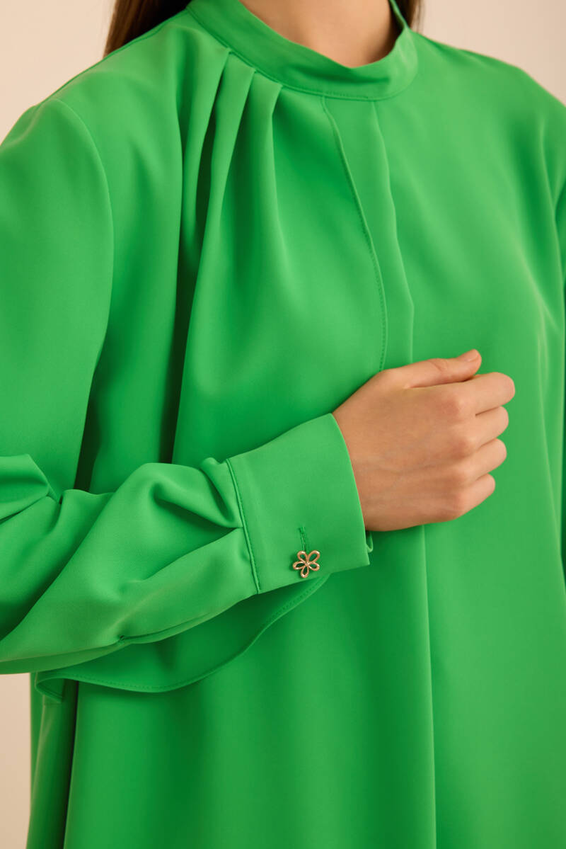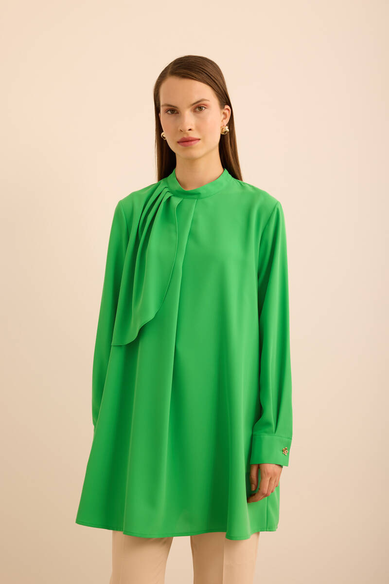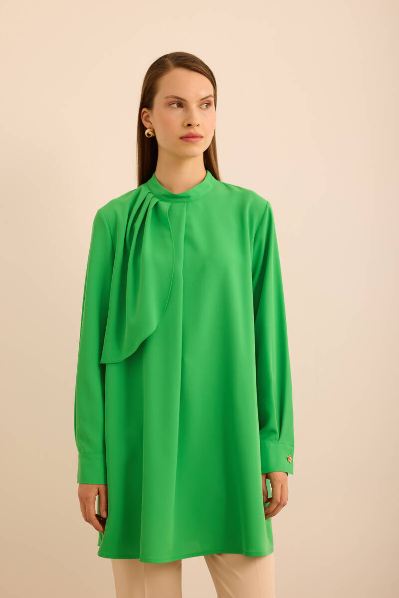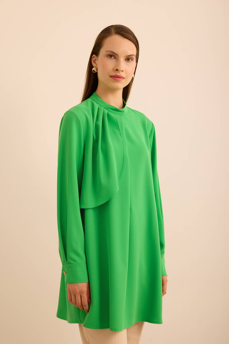 Ekru Kol Ucu Dikiş Detaylı Viscon Tunik
