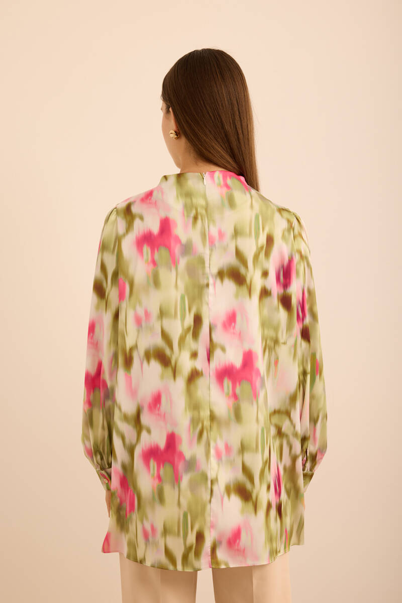 Kırmızı Çiçek Desenli İnce Dokuma Bluz