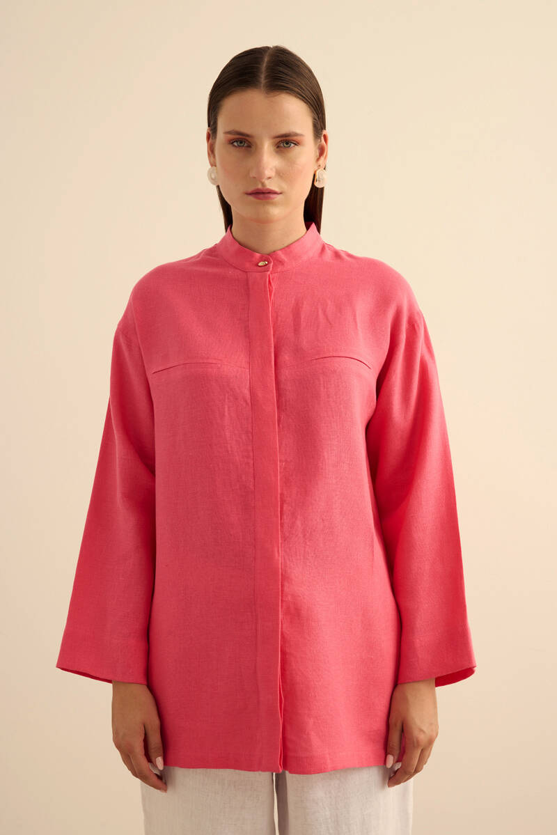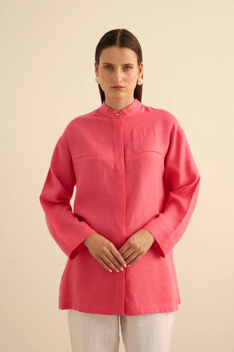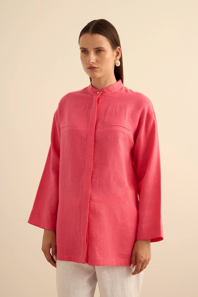 Vizon Hakim Yaka Keten Gömlek