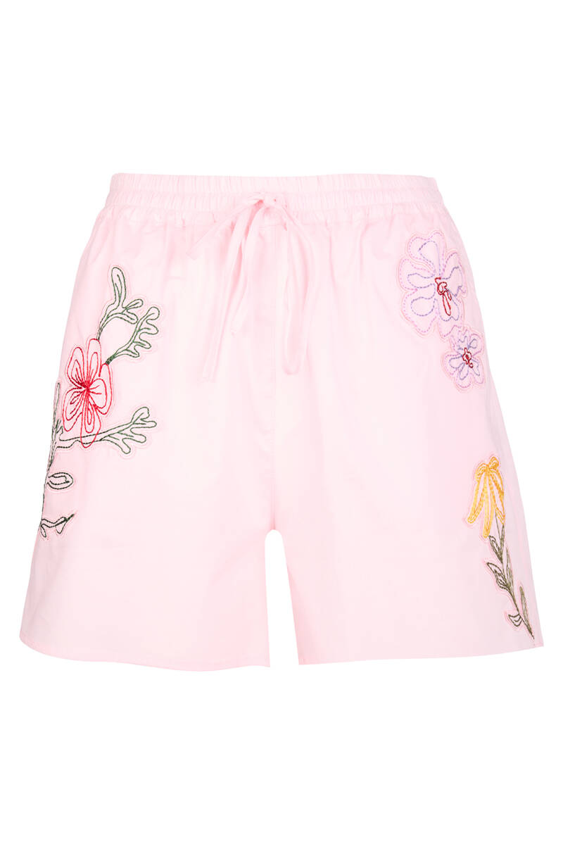 Pembe Renkli Aplike Nakış Detaylı , Beli Lastikli Şort