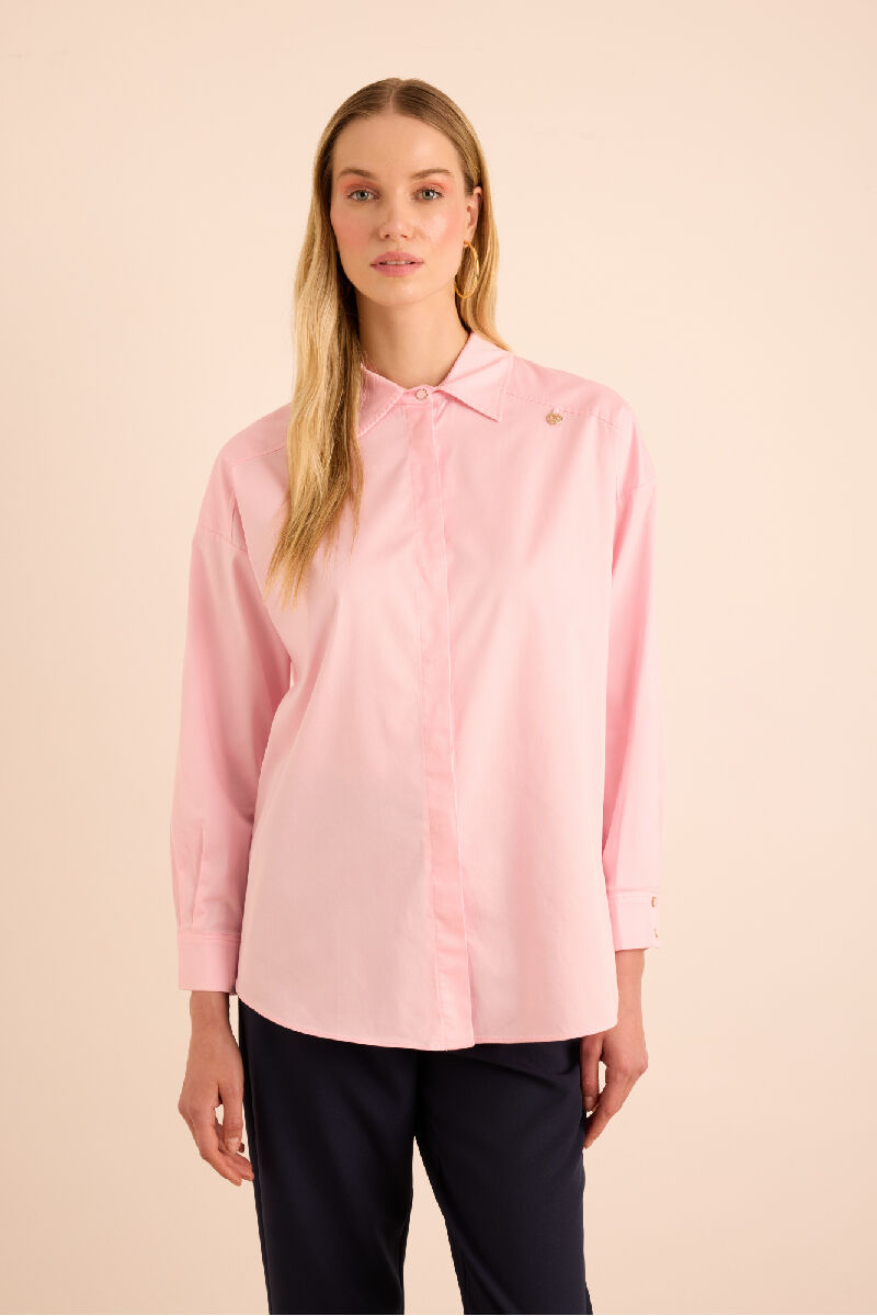 Pembe Sırtı Volan Detaylı Cotton Gömlek