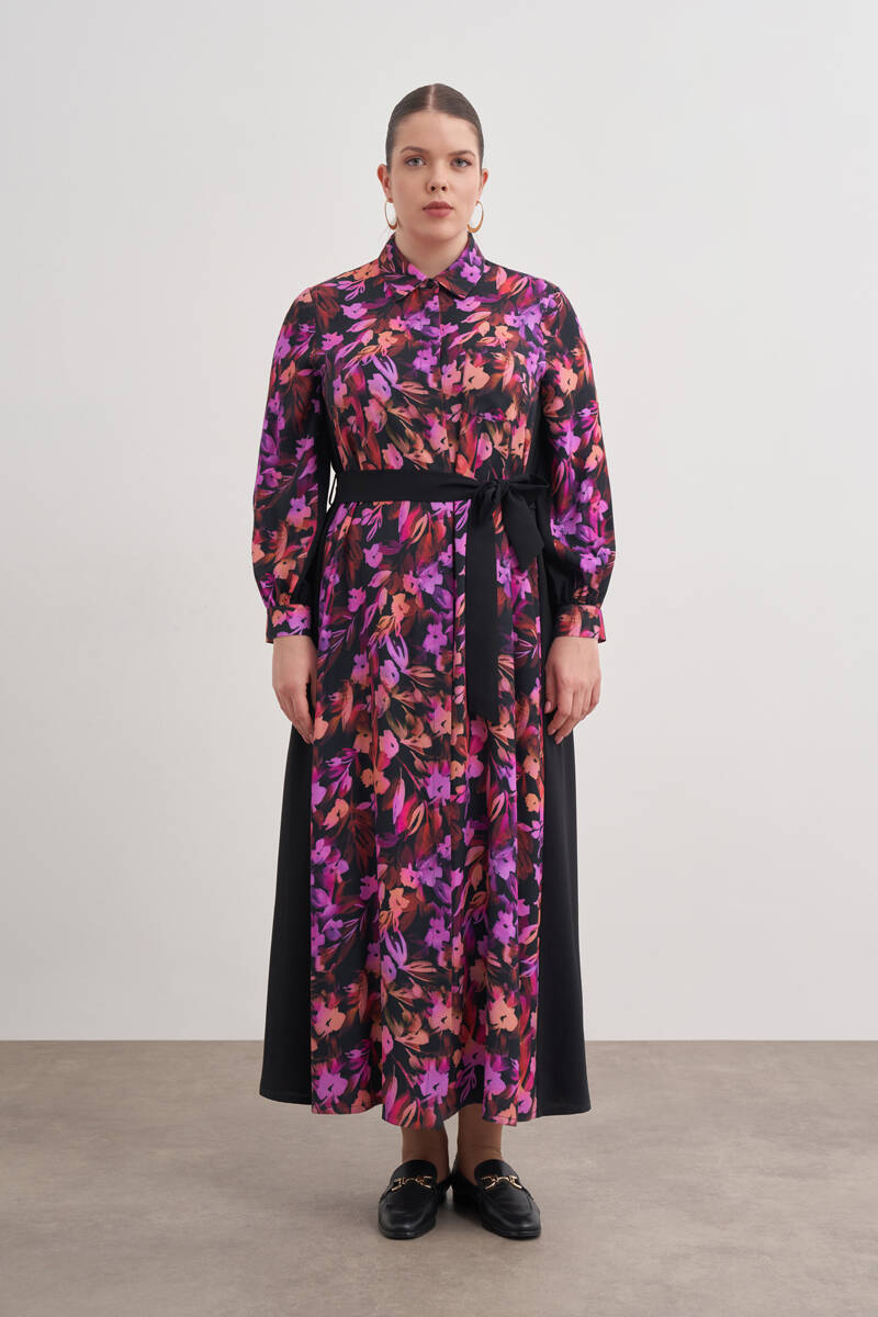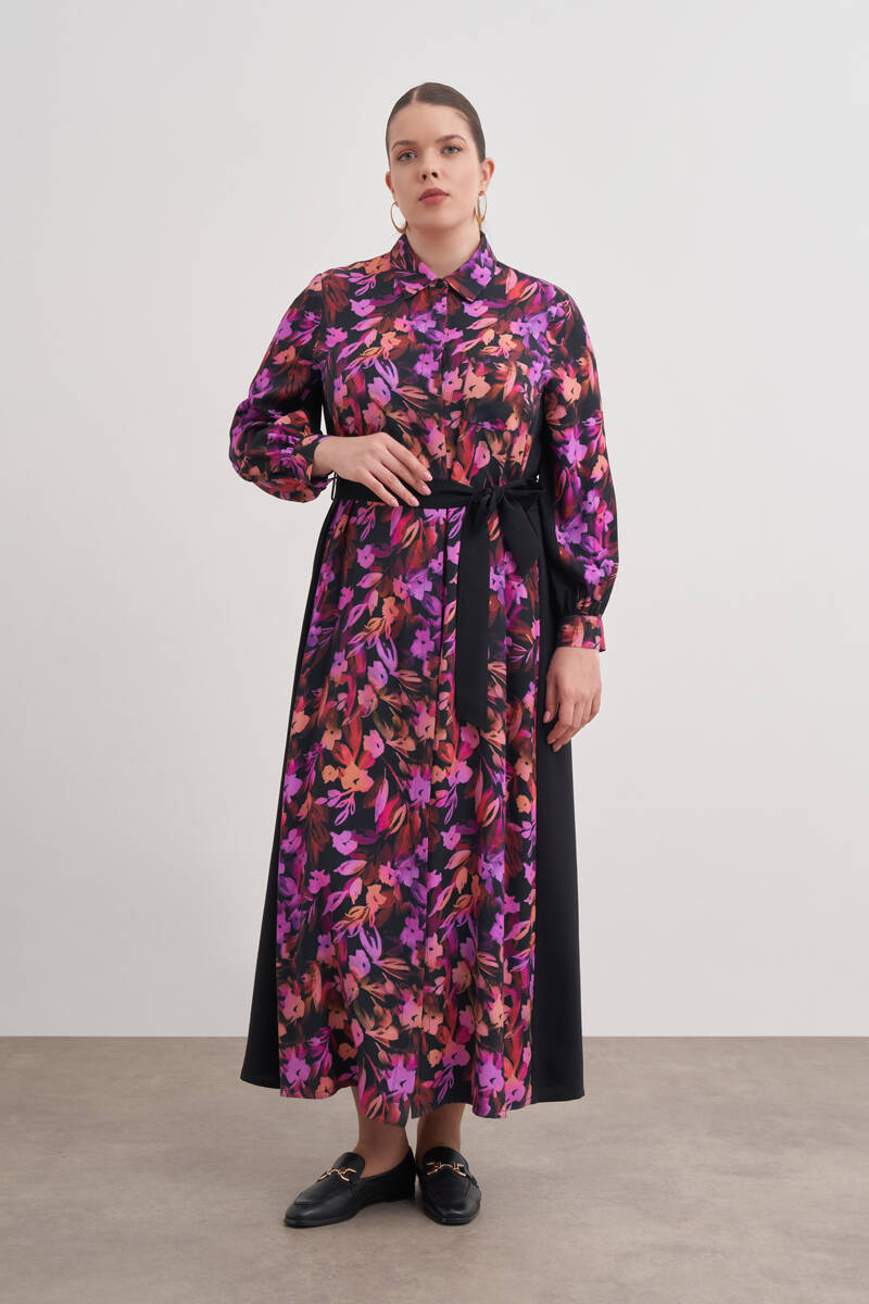 Turkuaz Geometrik Desenli Gömlek Elbise