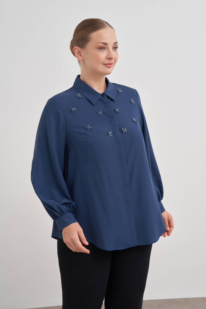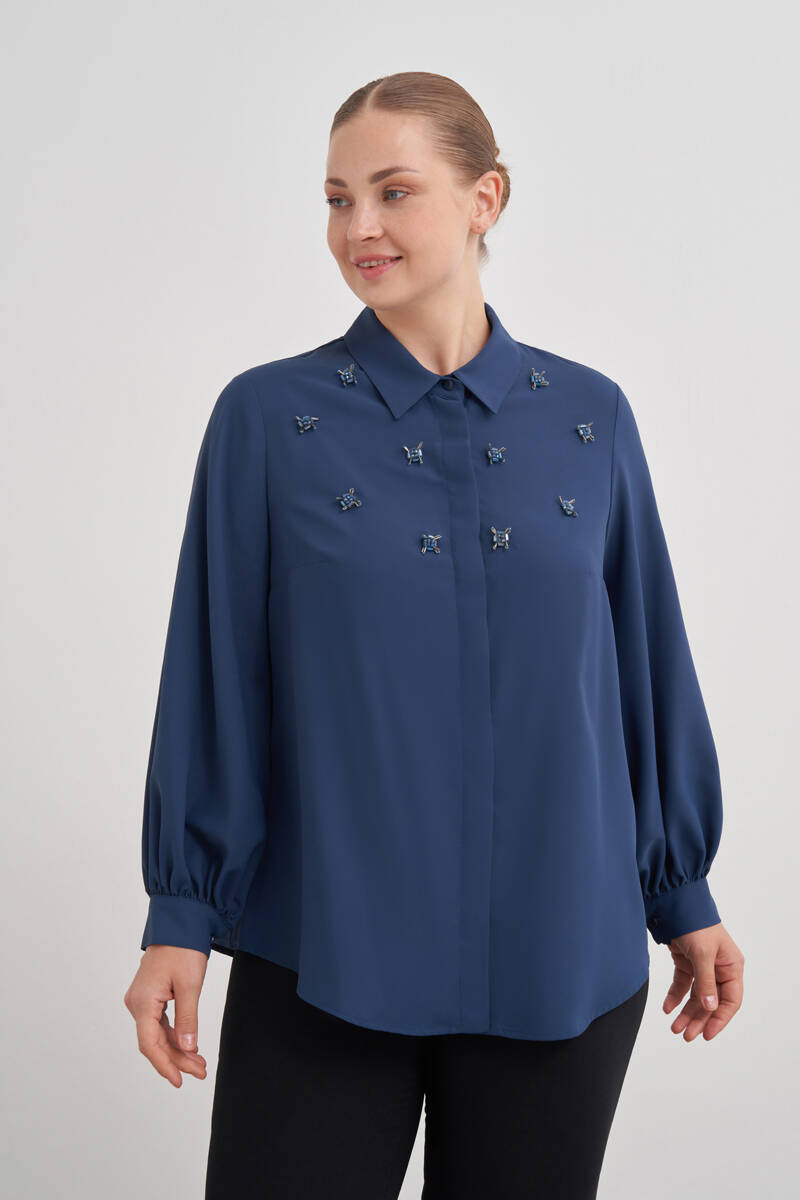 Pembe Yakası Pili ve İşleme Detaylı Dokuma Bluz