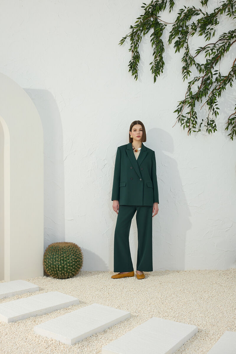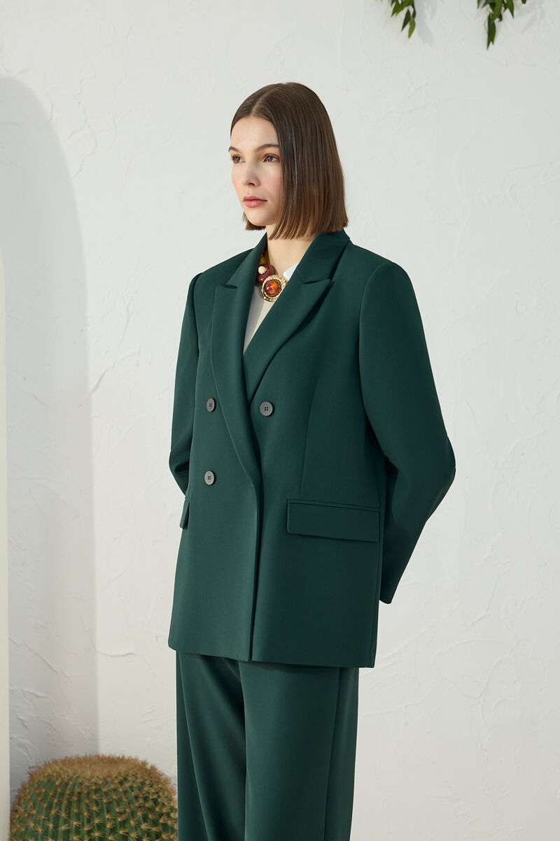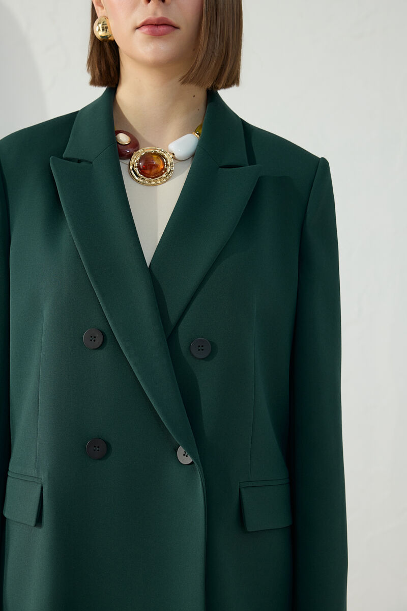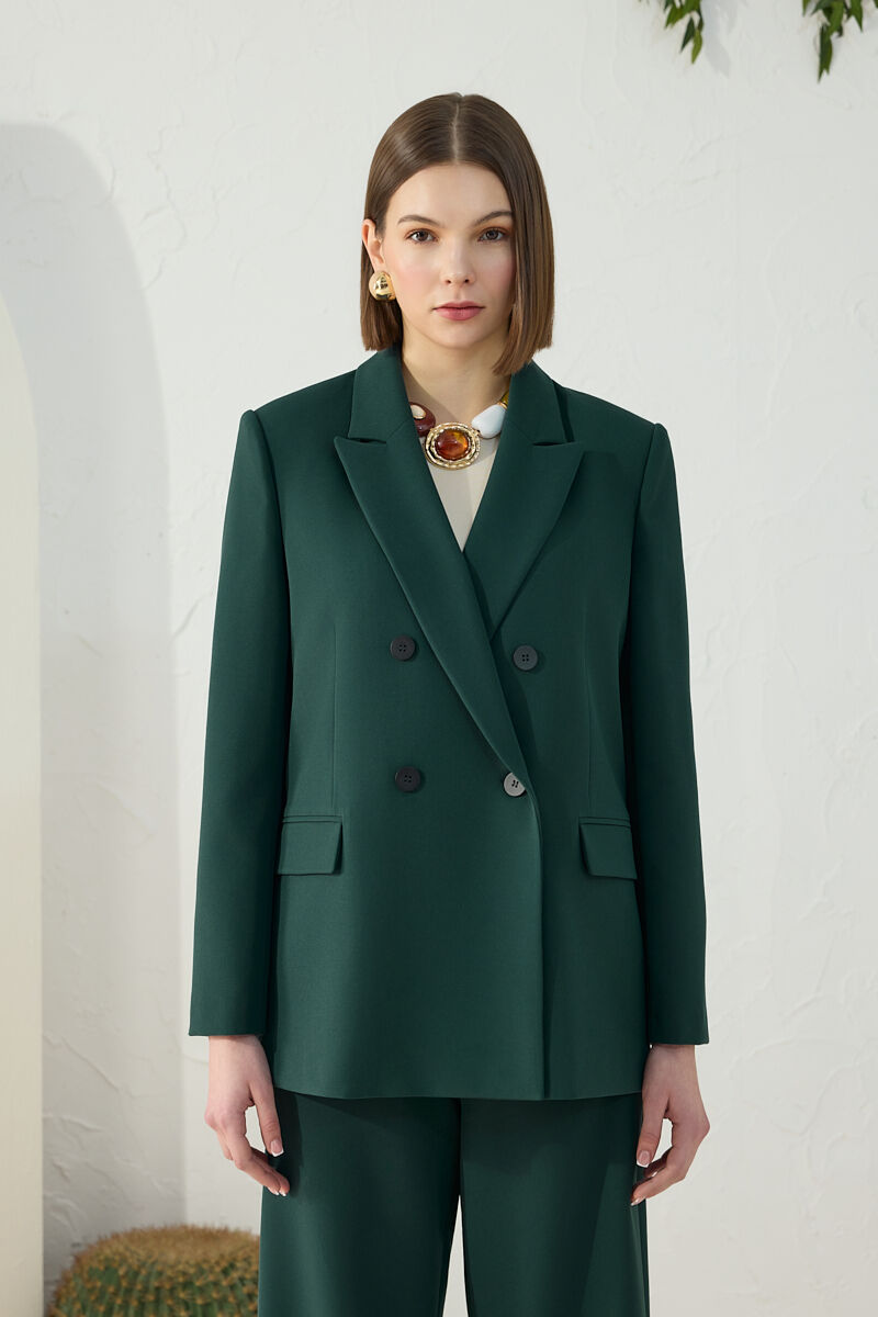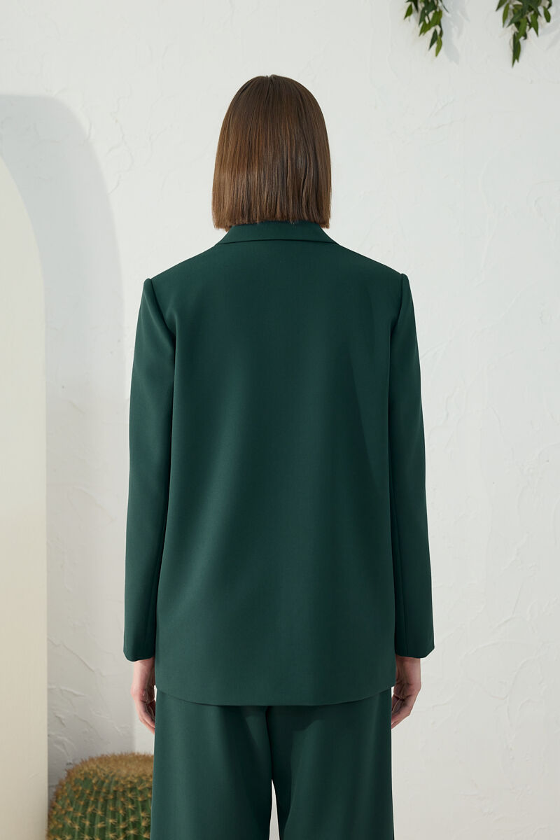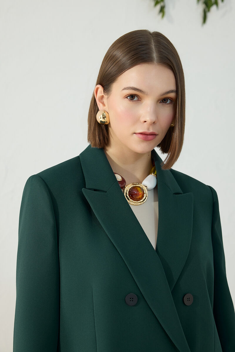 Ekru Sıfır Yaka Metal Düğmeli Şık Ceket