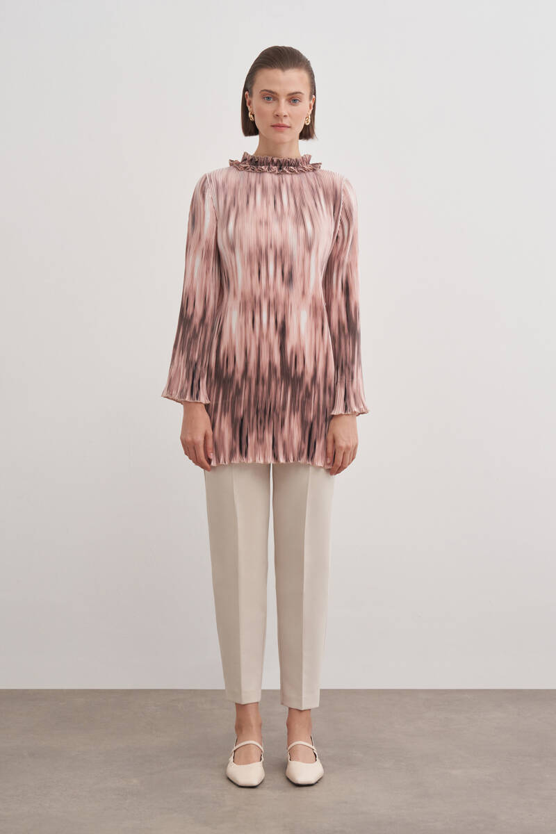 Ekru Kol Ucu Dikiş Detaylı Viscon Tunik