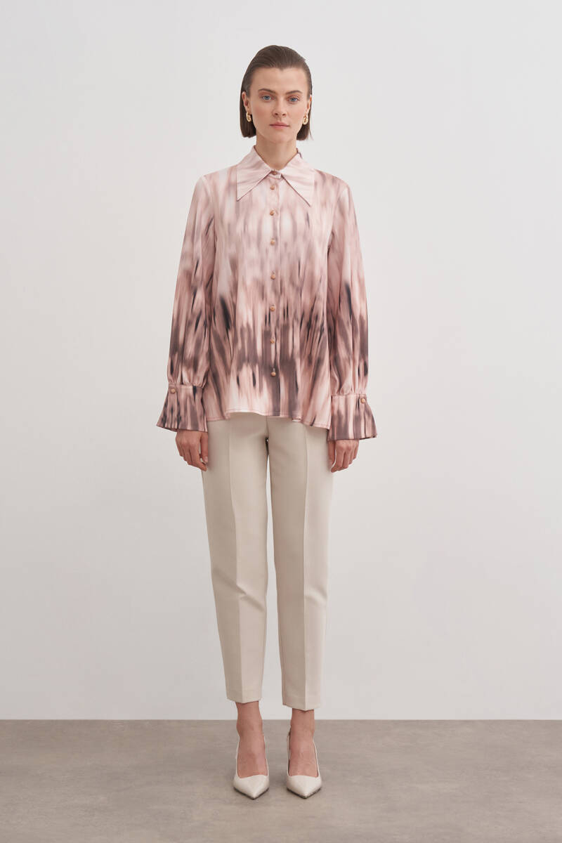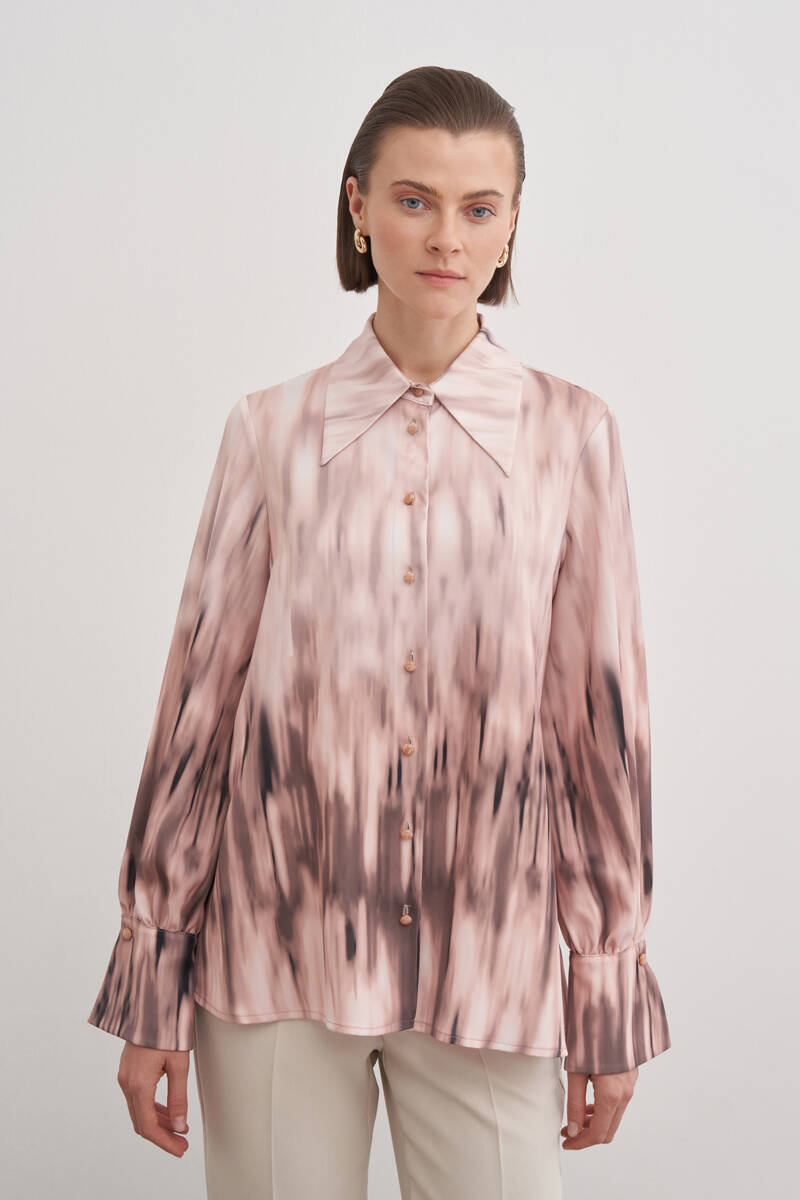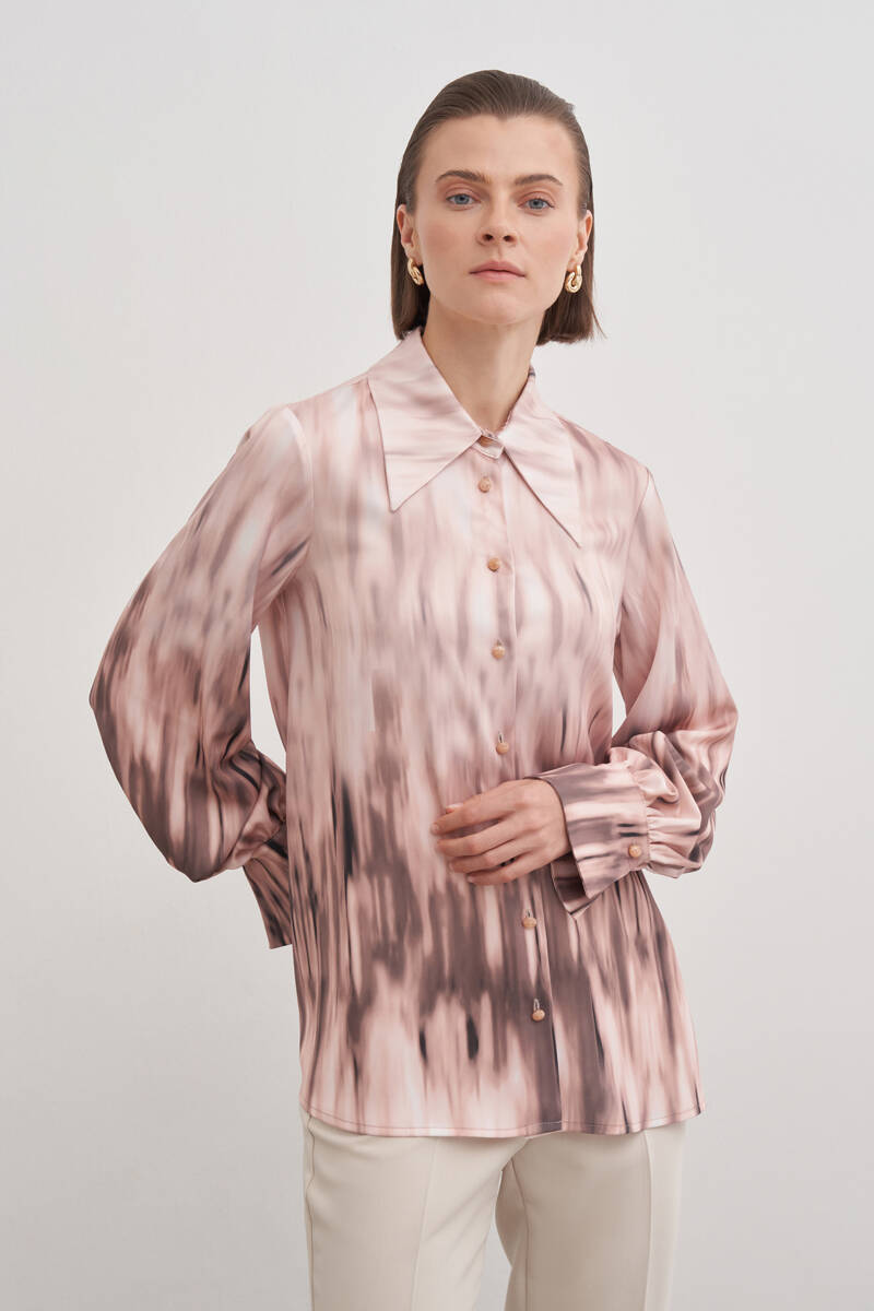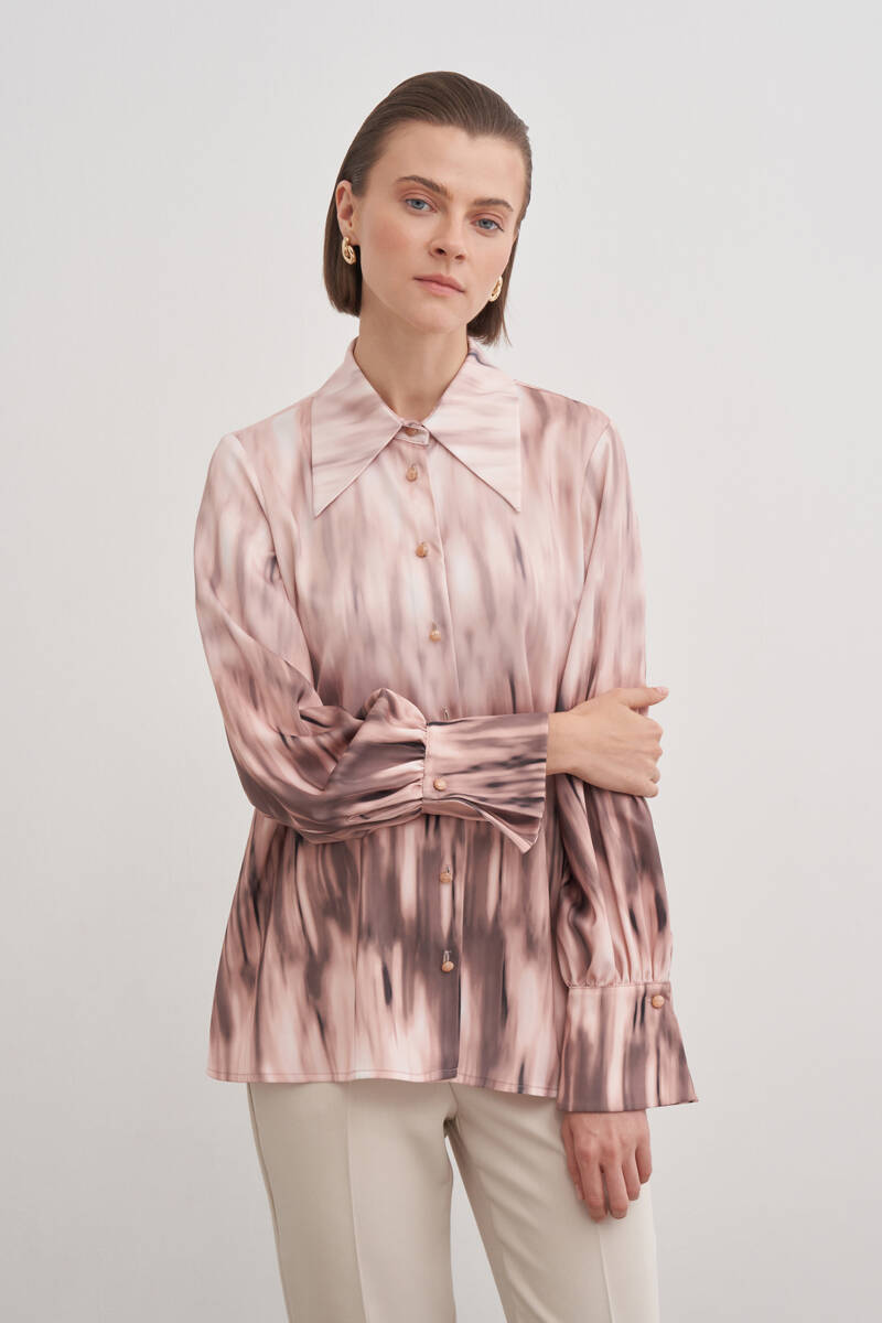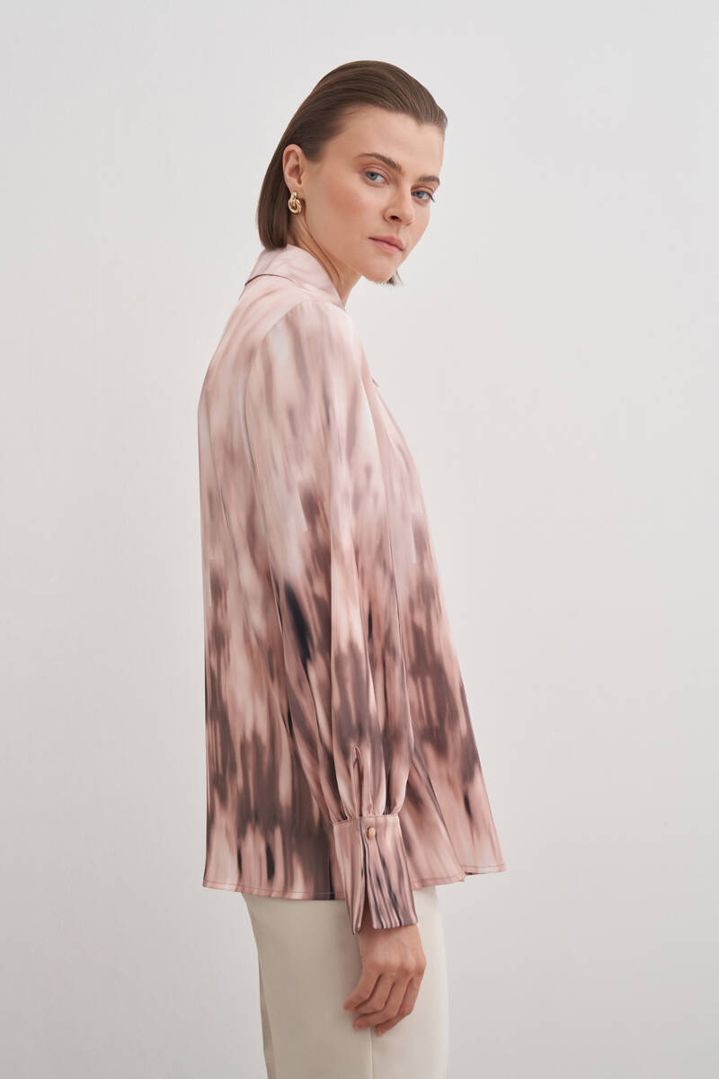 Pudra Desenli Kırlangıç Yaka Bluz