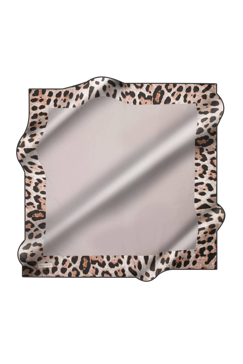Leopar Desenli 90X90 Aker İpek Krep Saten Eşarp