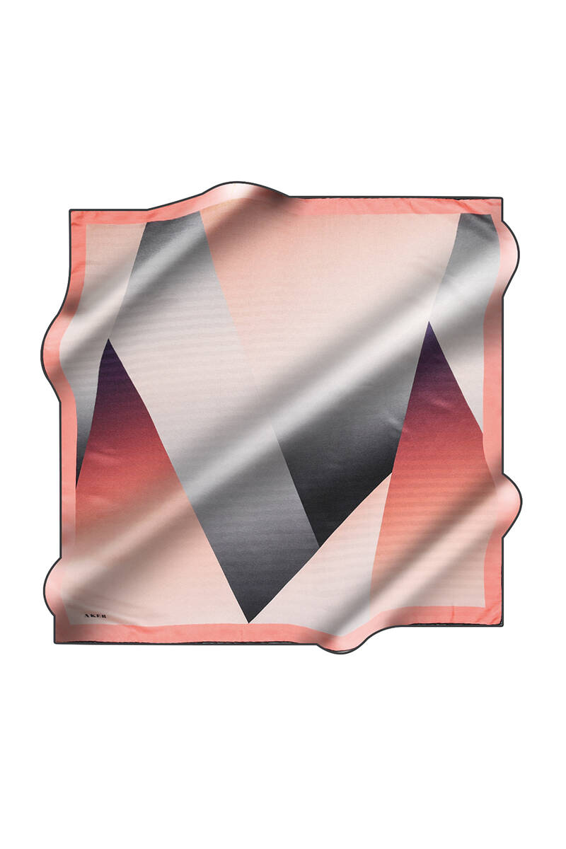 Logo Desenli 90X90 İpek Krep Saten Eşarp