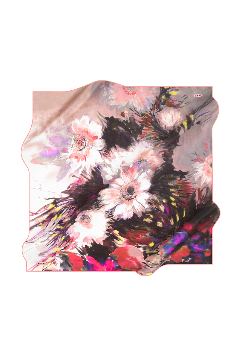 Çiçek Desenli 90X90 Aker İpek Tivil Eşarp