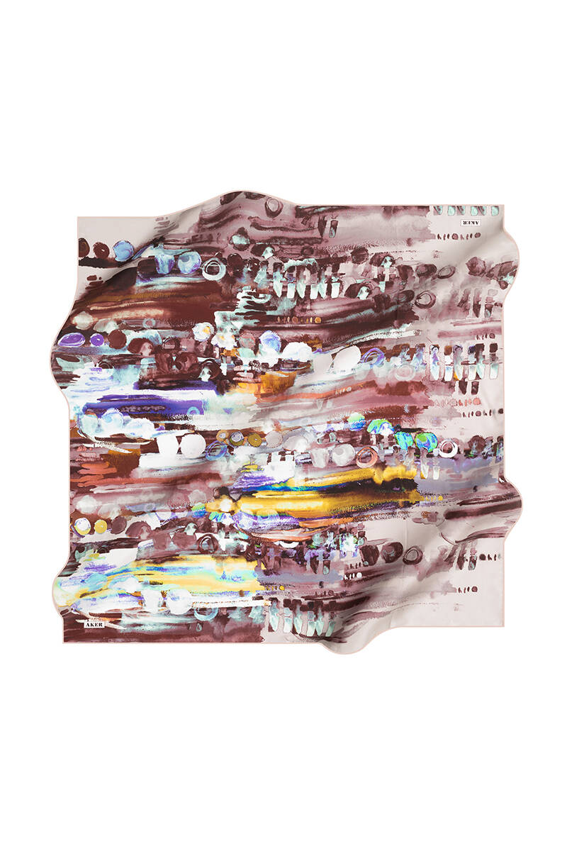 Geometrik Desenli 90X90 İpek Krep Saten Eşarp