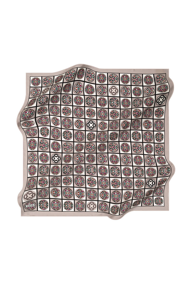 Geometrik Desenli 90X90 İpek Krep Saten Eşarp