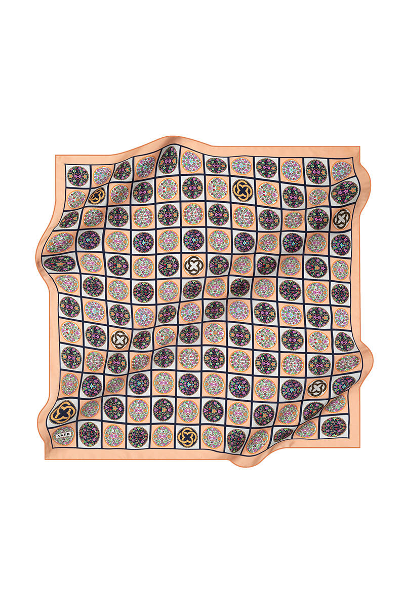 Geometrik Desenli 90X90 İpek Twill Eşarp