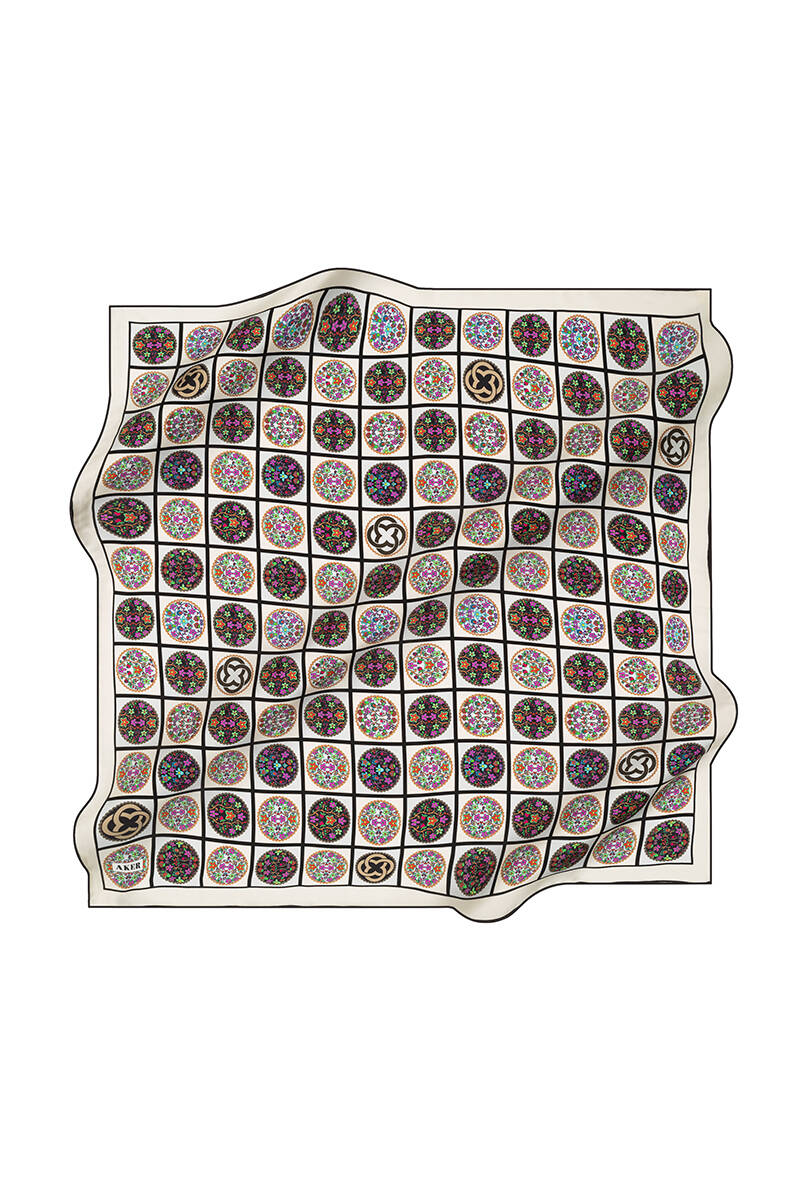 Geometrik Desenli 90X90 İpek Twill Eşarp