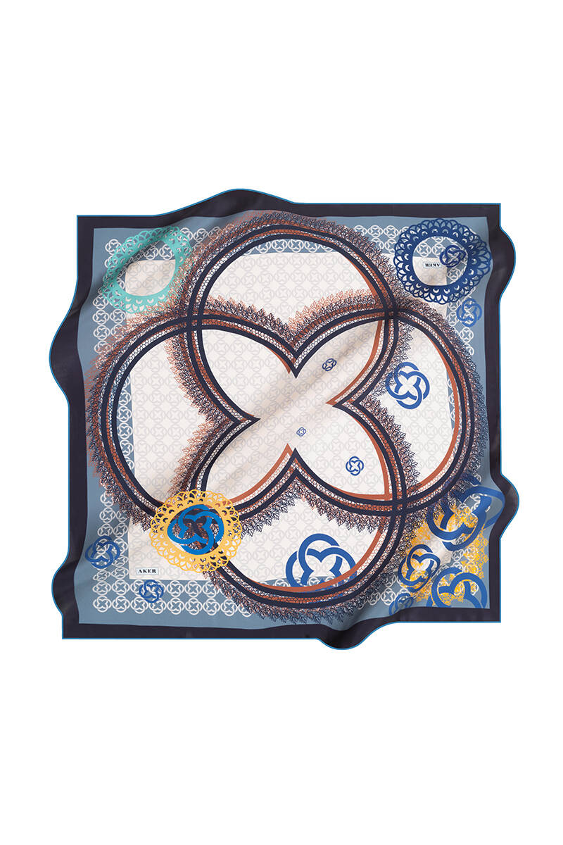 Logo Desenli 90X90 Aker İpek Tivil Eşarp