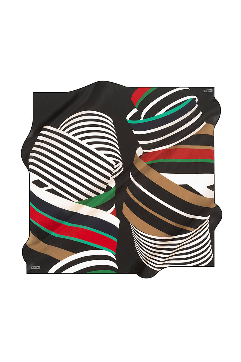 Geometrik Desenli İpek Twill Eşarp
