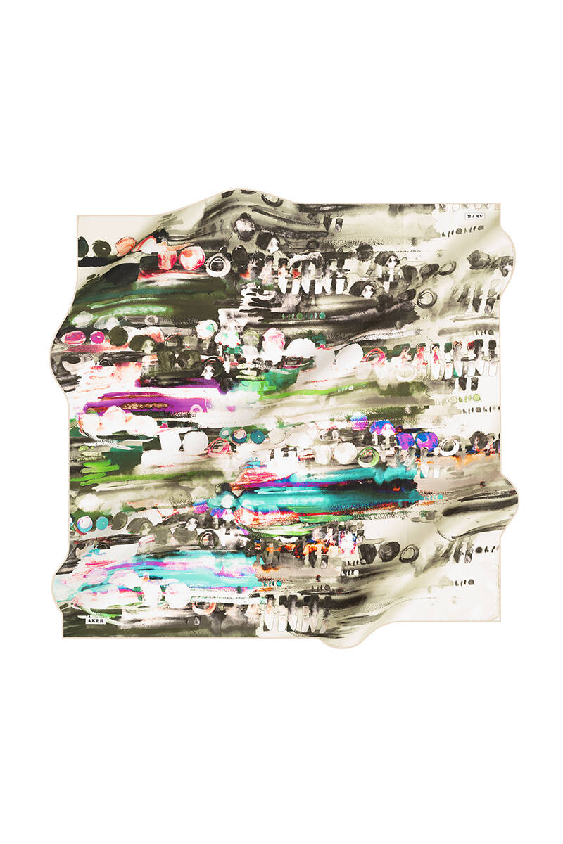 Fırça Desenli 90X90 Aker İpek Krep Saten Eşarp