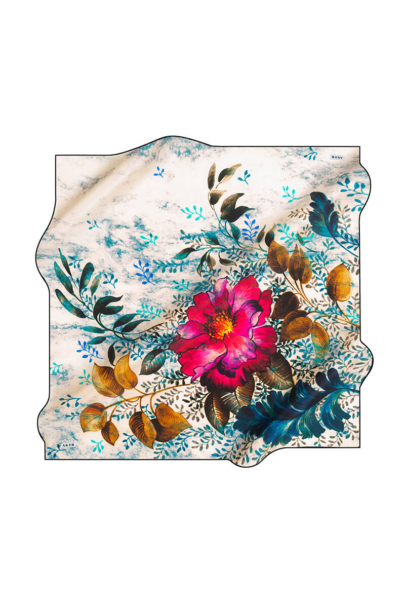 Logo Desenli 90X90 İpek Krep Saten Eşarp