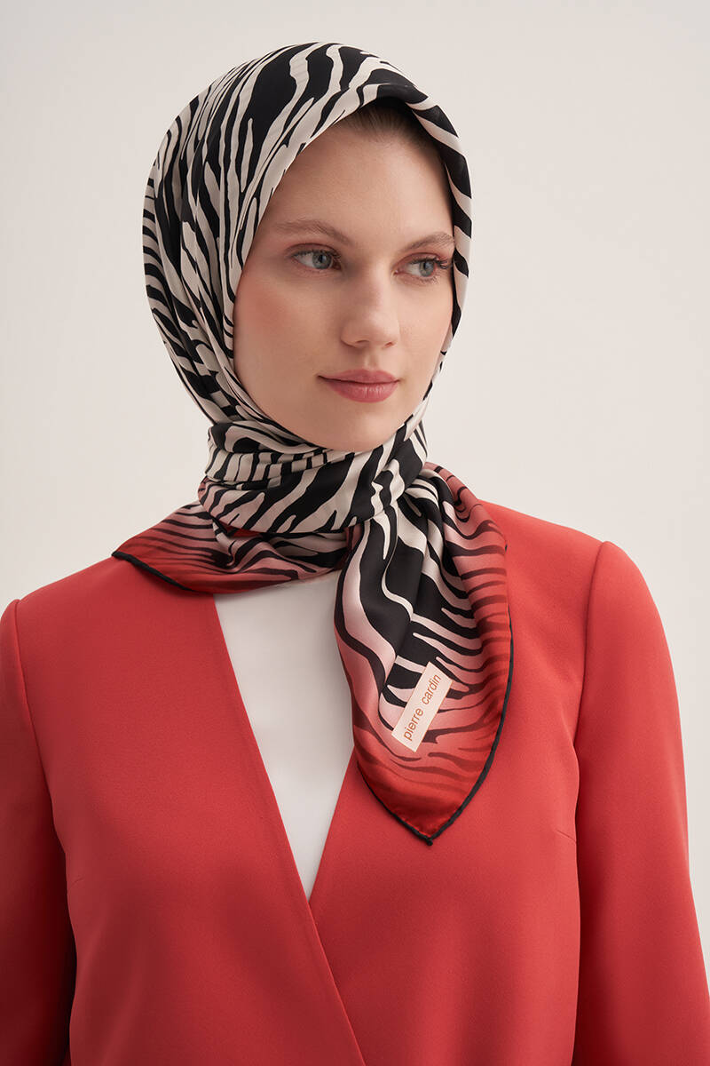 Zebra Desenli 90X90 İpek Krep Saten Eşarp