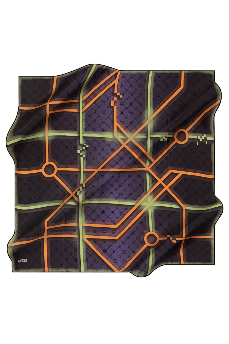 Geometrik Desenli 90X90 Aker İpek Krep Saten Eşarp