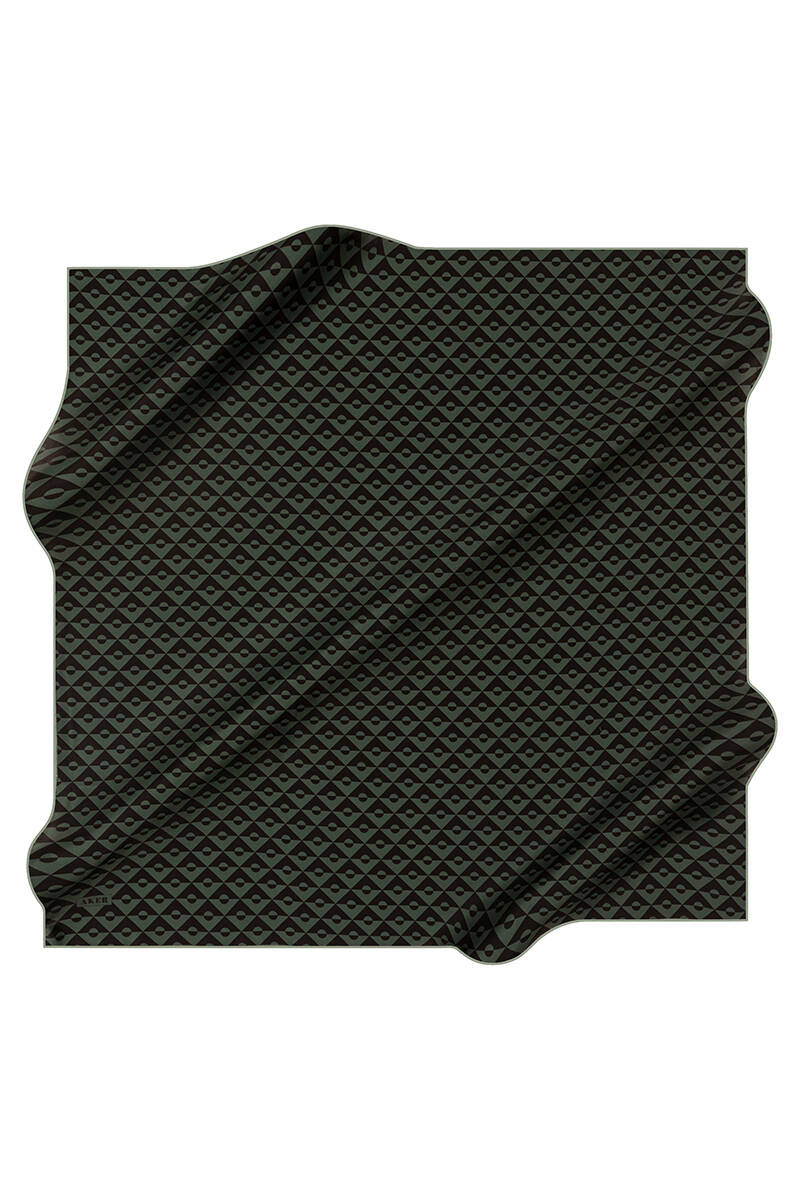 Logo Desenli 90X90 İpek Krep Saten Eşarp