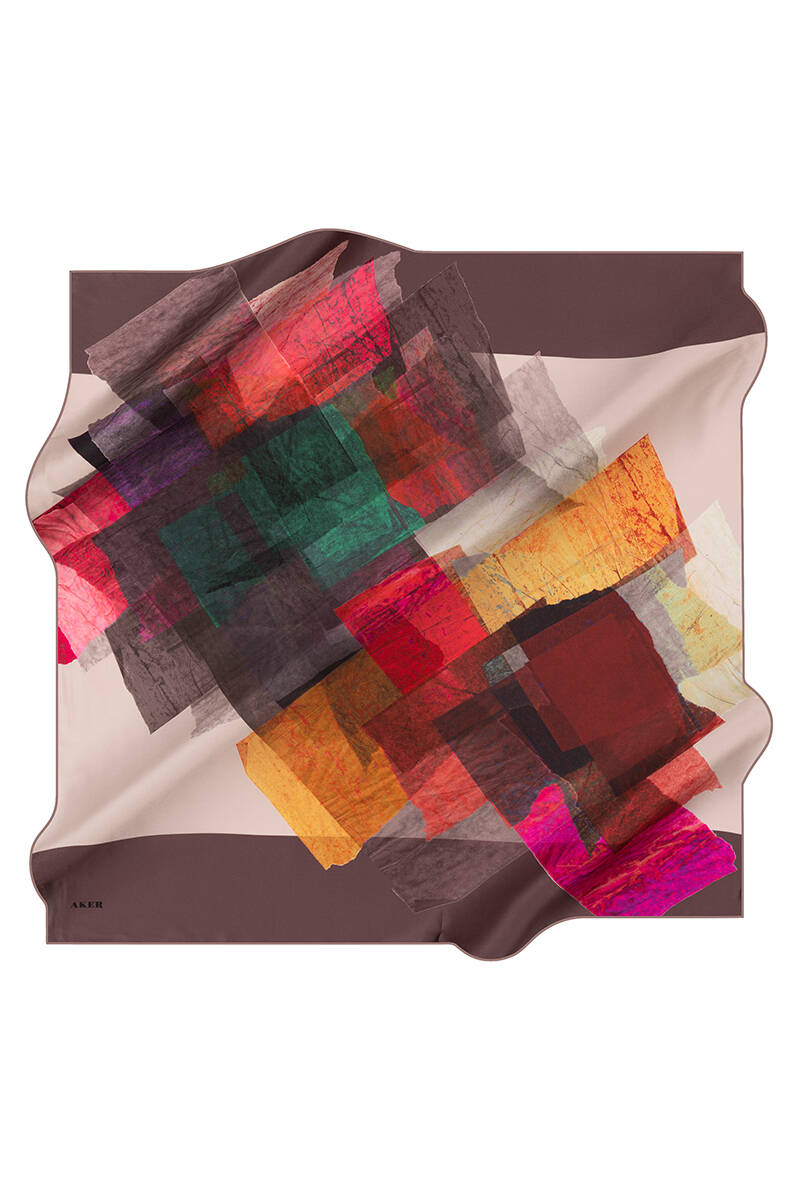 Geometrik Desenli 90X90 Aker İpek Krep Saten Eşarp