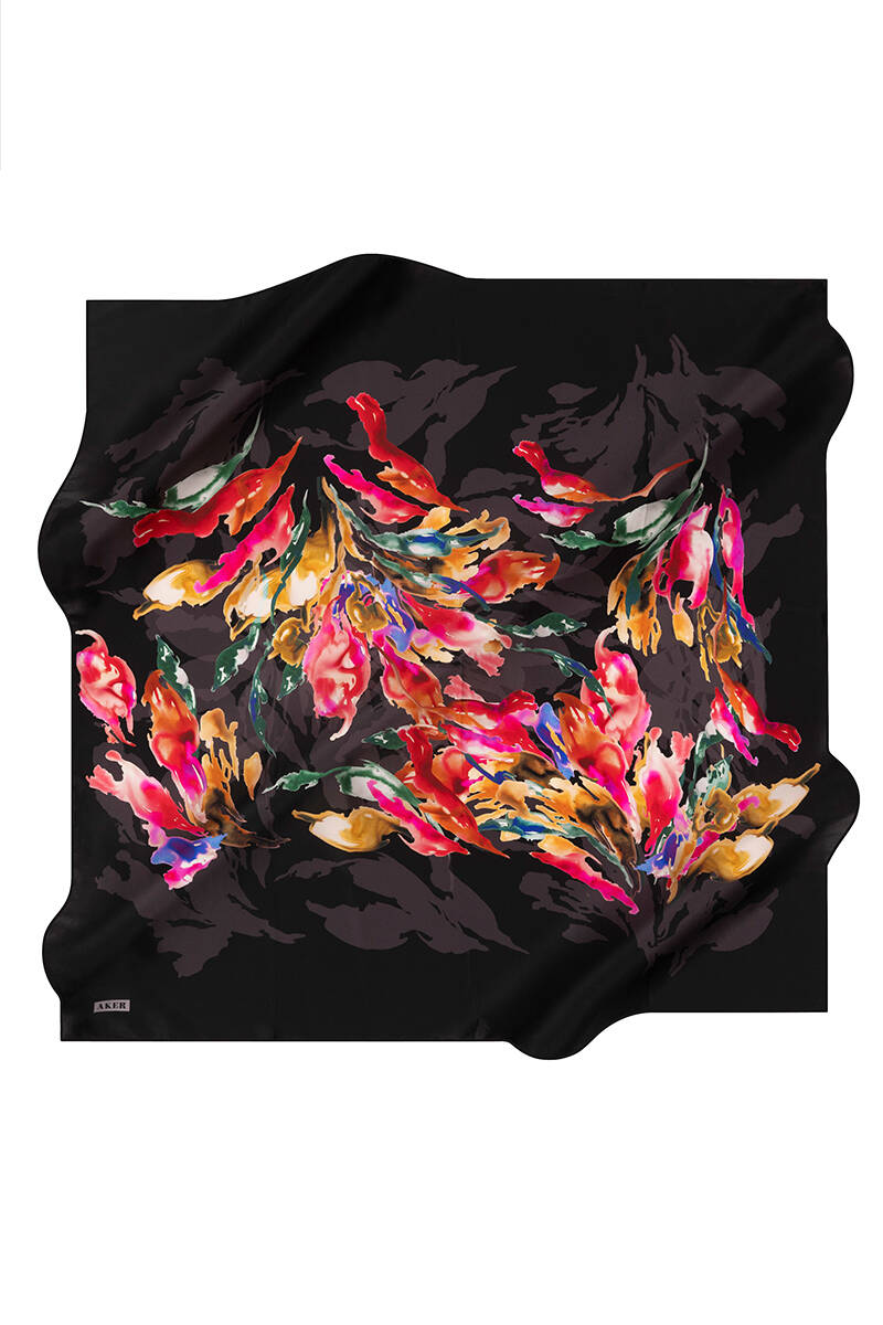 Çiçek Desenli 90X90 İpek Krep Saten Eşarp