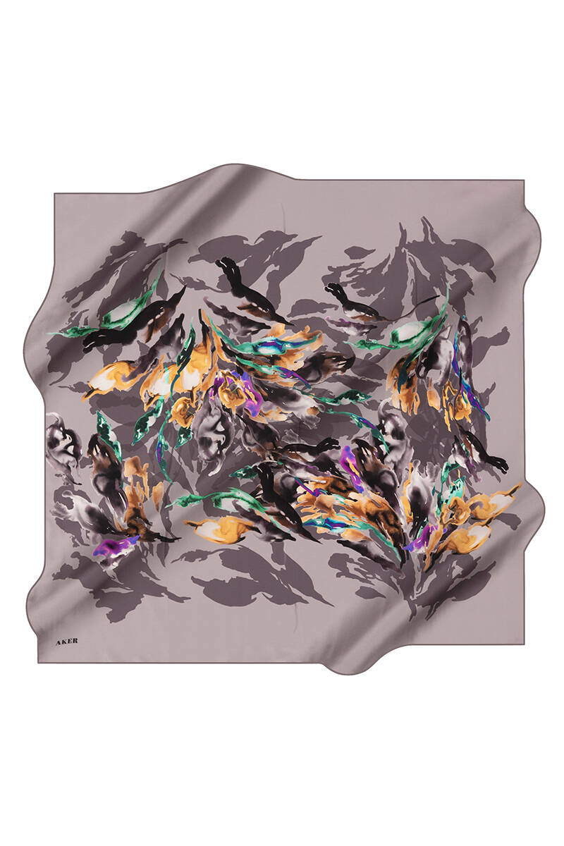 Çiçek Desenli 90X90 İpek Krep Saten Eşarp