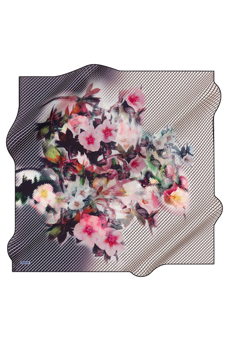 Çiçek Desenli 90X90 İpek Krep Saten Eşarp