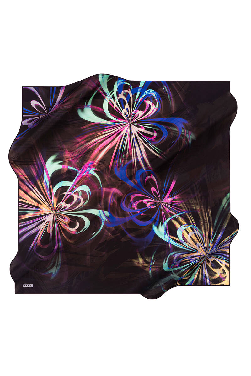 Çiçek Desenli 90X90 İpek Krep Saten Eşarp