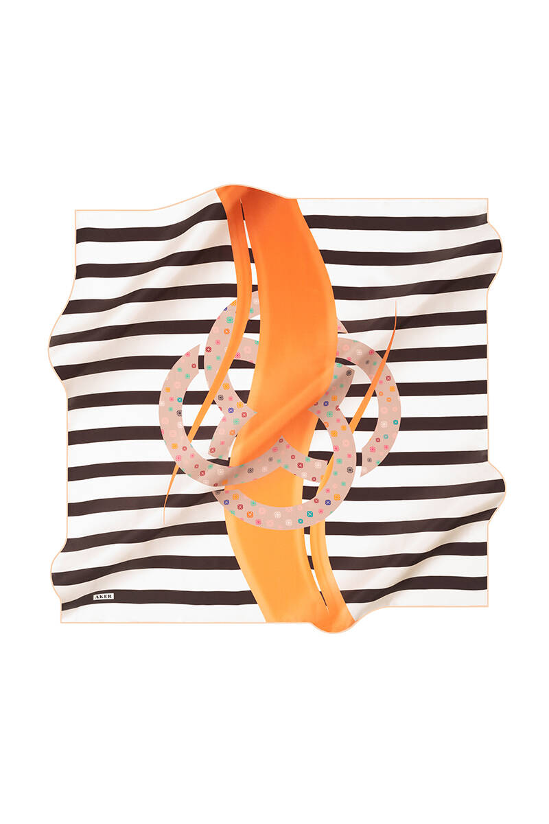 Logo Desenli 90X90 İpek Krep Saten Eşarp