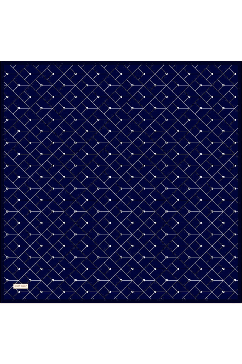 Lacivert Logo Desenli 90X90 İpek Krep Saten Eşarp