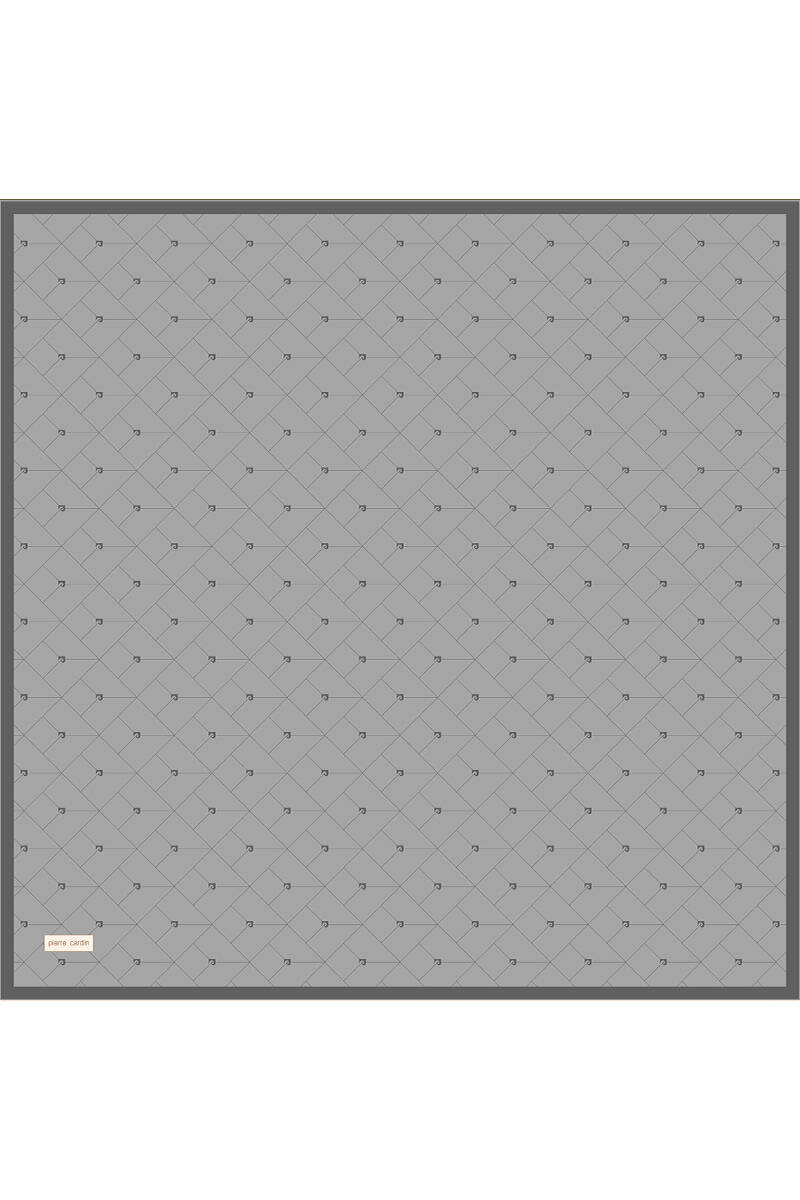 Açık Gri Logo Desenli 90X90 İpek Krep Saten Eşarp