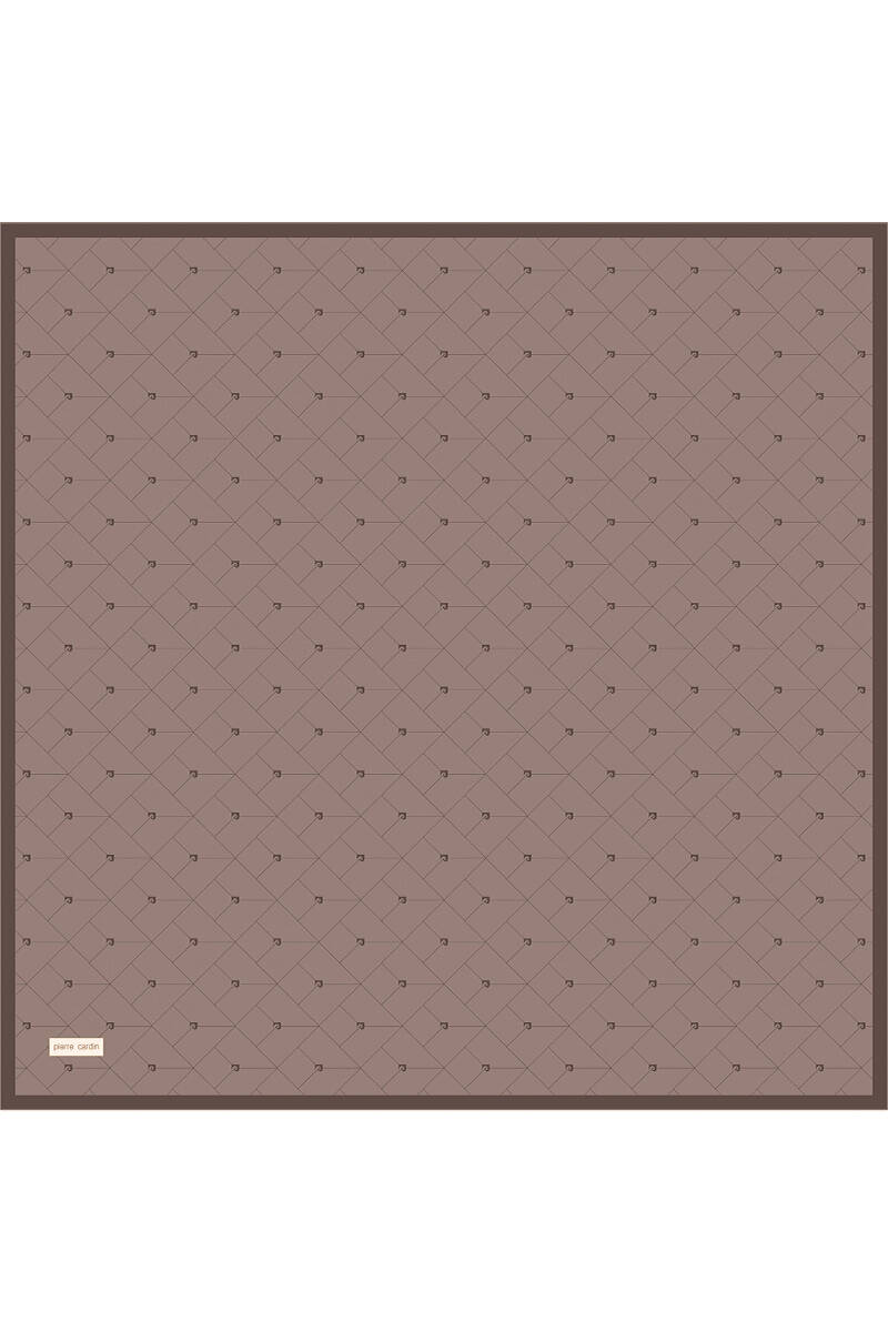 Kahverengi Logo Desenli 90X90 İpek Krep Saten Eşarp