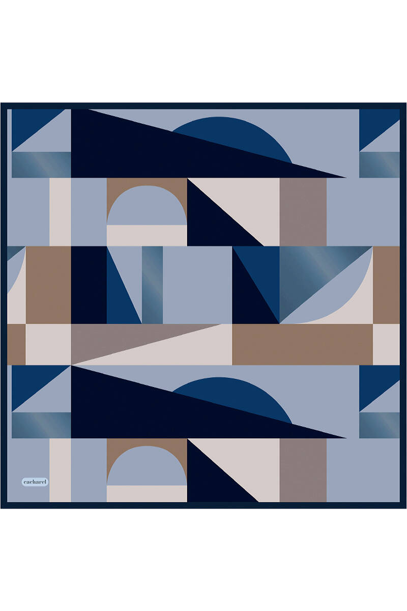 Geometrik Desenli İpek Twill Eşarp