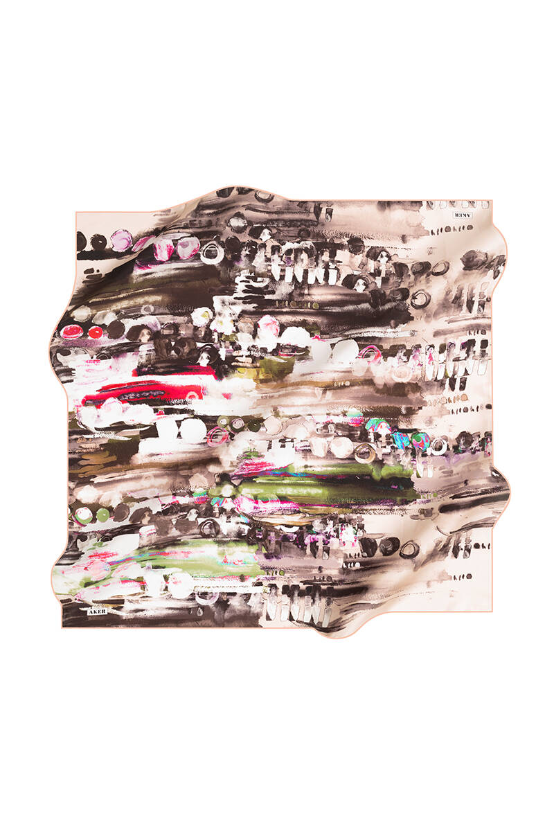 Geometrik Desenli 90X90 İpek Krep Saten Eşarp
