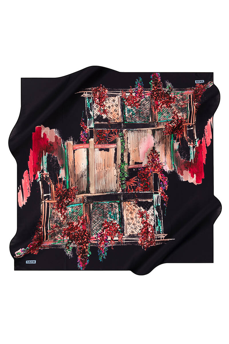 Fırça Desenli 90X90 Aker İpek Krep Saten Eşarp