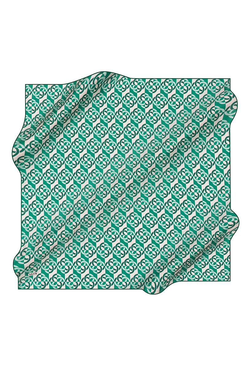 Geometrik Desenli 90X90 İpek Twill Eşarp