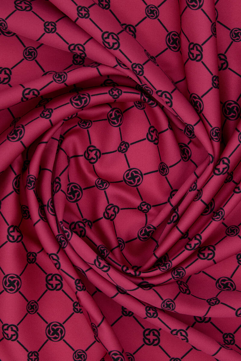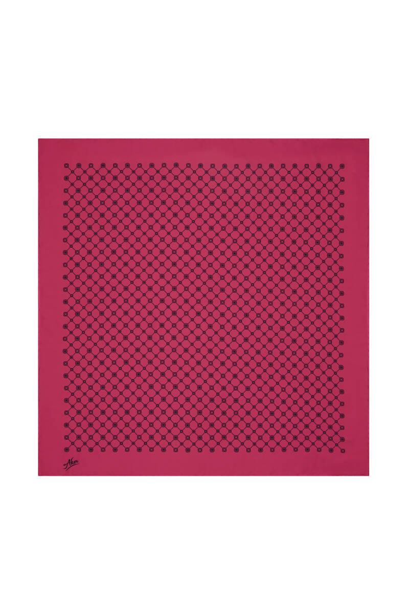 Pembe Logo Desenli 90X90 Polyester Twill Eşarp