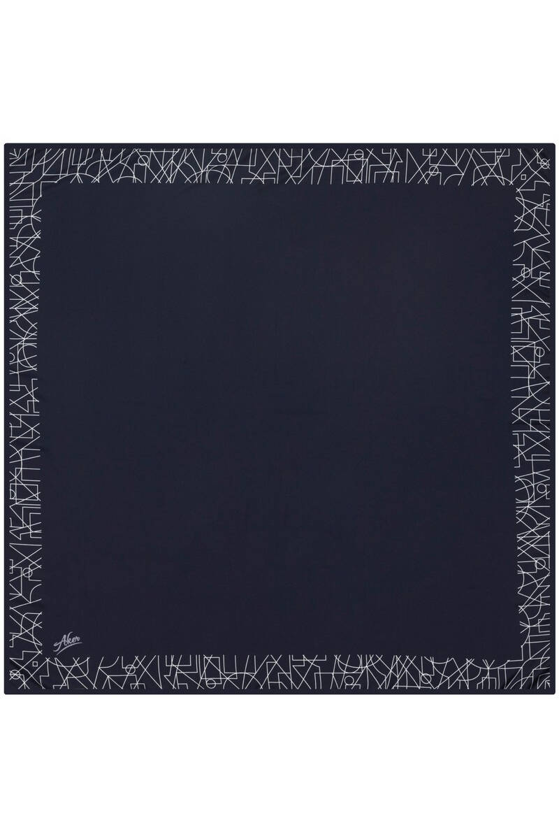 Lacivert Monogram Jakar Eşarp