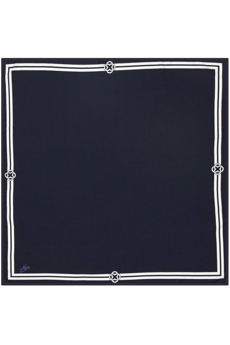 Lacivert Monogram Jakar Eşarp