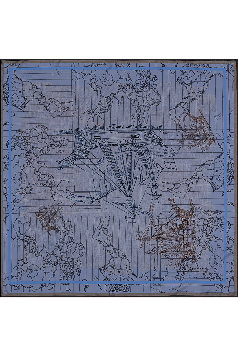 Geometrik Desenli 90X90 İpek Twill Eşarp