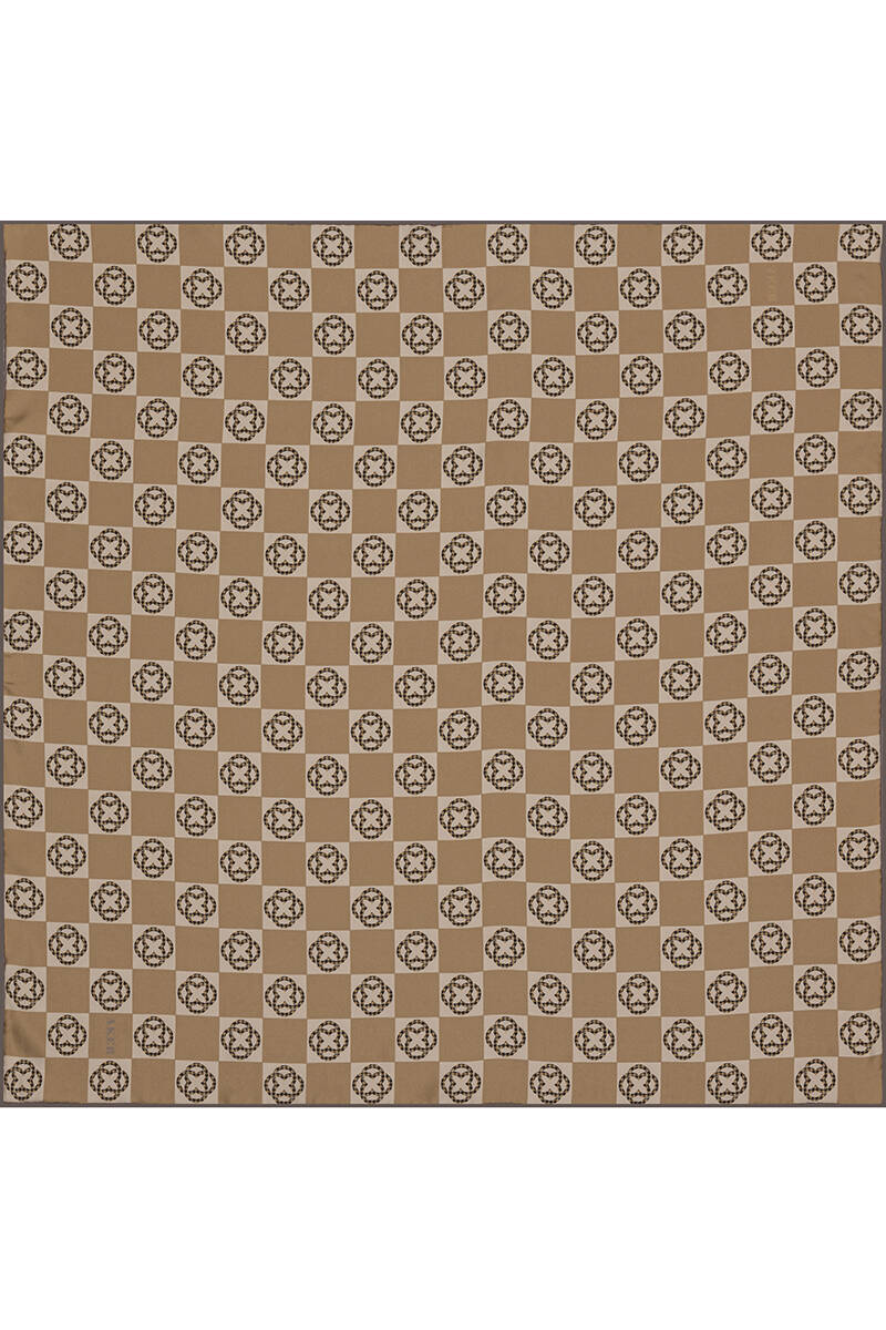Geometrik Desenli 90X90 İpek Twill Eşarp