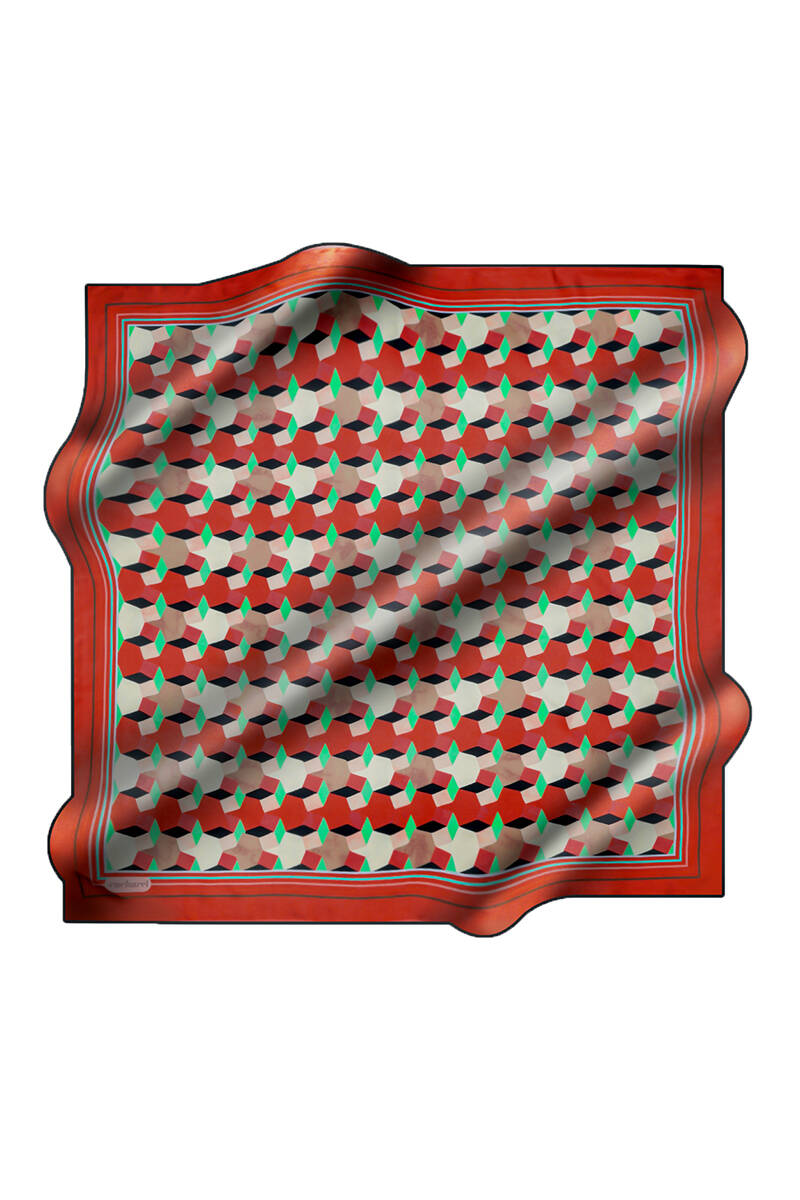 Geometrik Desenli İpek Twill Eşarp