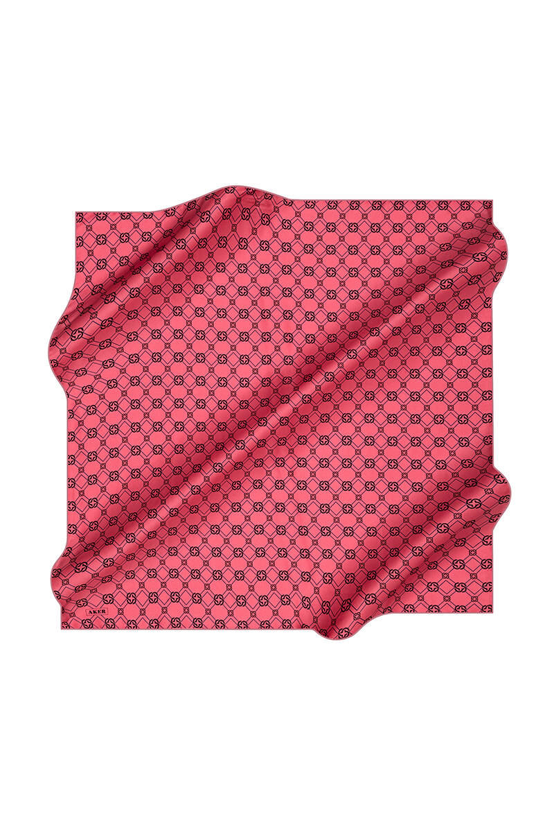 Logo Desenli 90X90 İpek Krep Saten Eşarp