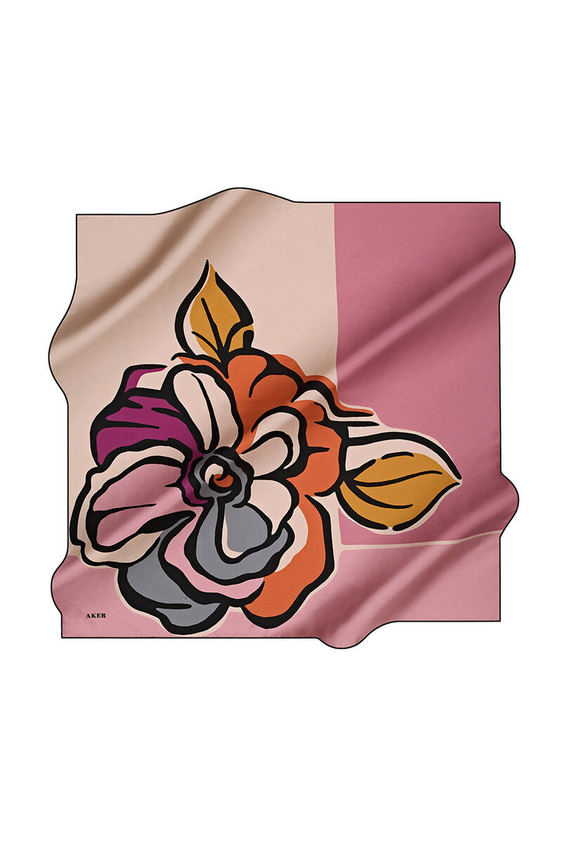 Logo Desenli 90X90 İpek Krep Saten Eşarp