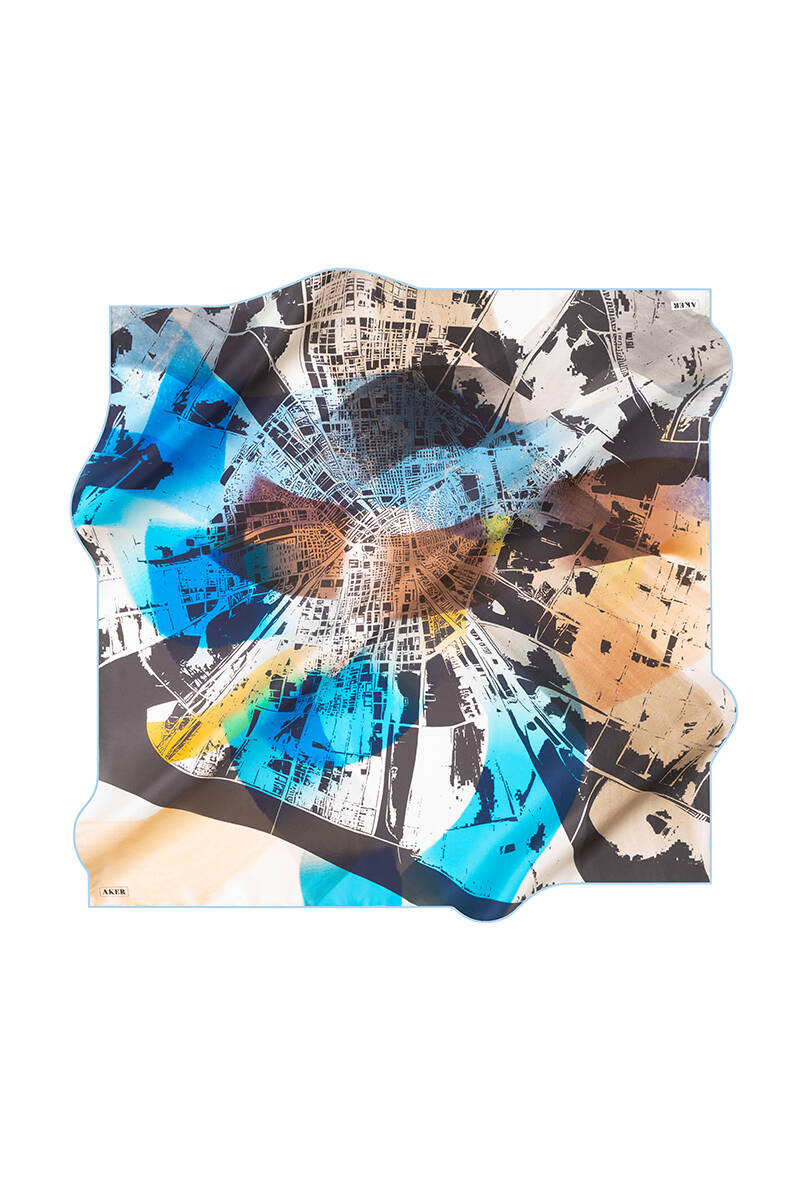 Renkli 90X90 Aker İpek Krep Saten Eşarp