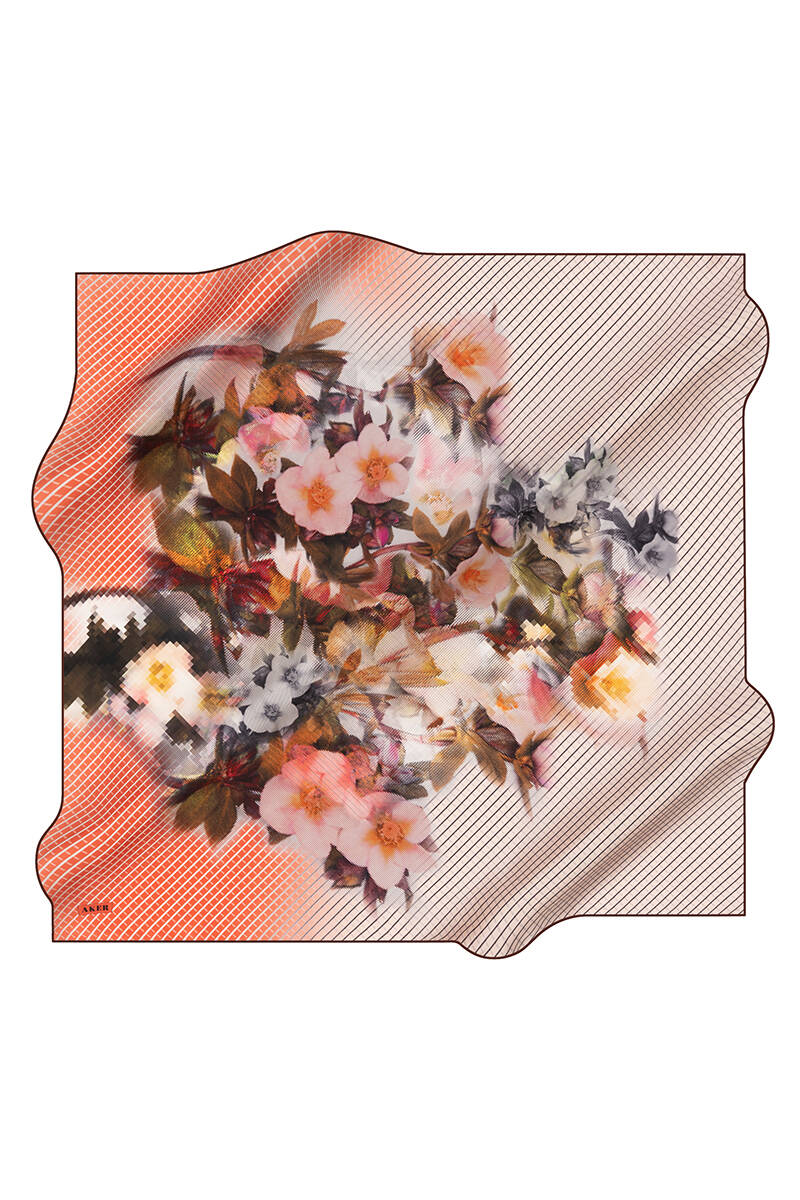 Çiçek Desenli 90X90 Aker İpek Krep Saten Eşarp