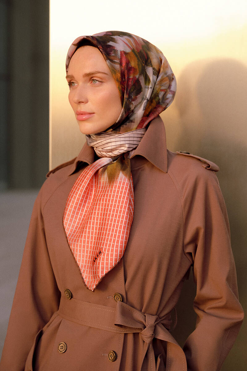 Logo Desenli 90X90 İpek Krep Saten Eşarp