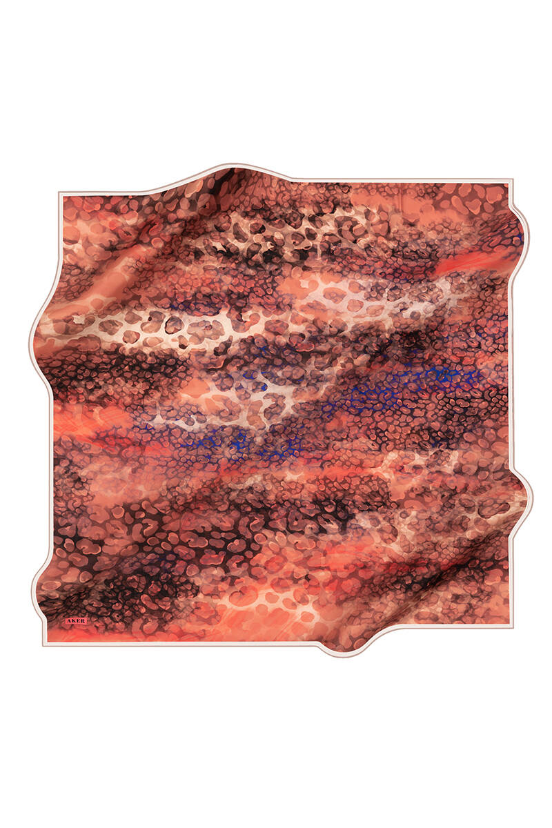 Leopar Desenli 90X90 Aker İpek Krep Saten Eşarp